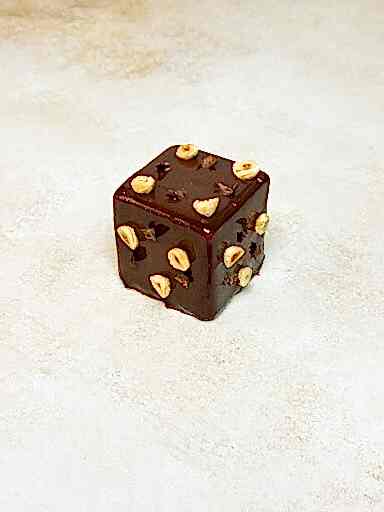 Minimal ve modern küp formda tasarlanan bu özel pasta; doğal fındık püresi, ipeksi çikolata mousse ve nemli çikolata kek katmanları ile çok katmanlı bir tat deneyimi sunar.